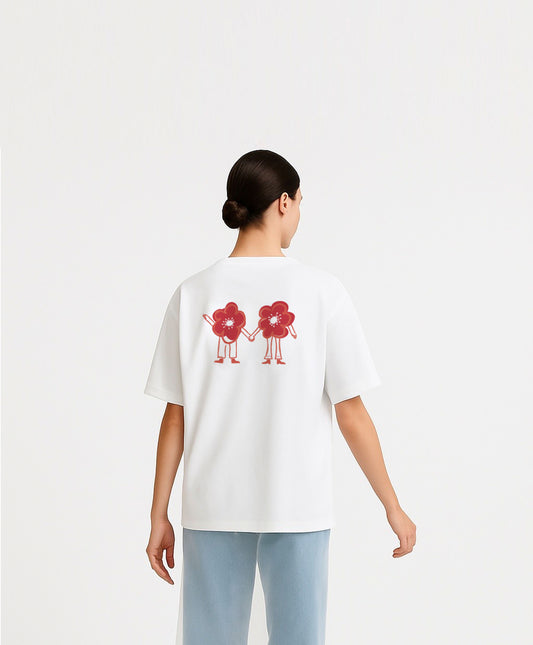 Bloom Together White-Red Oversize Tişört